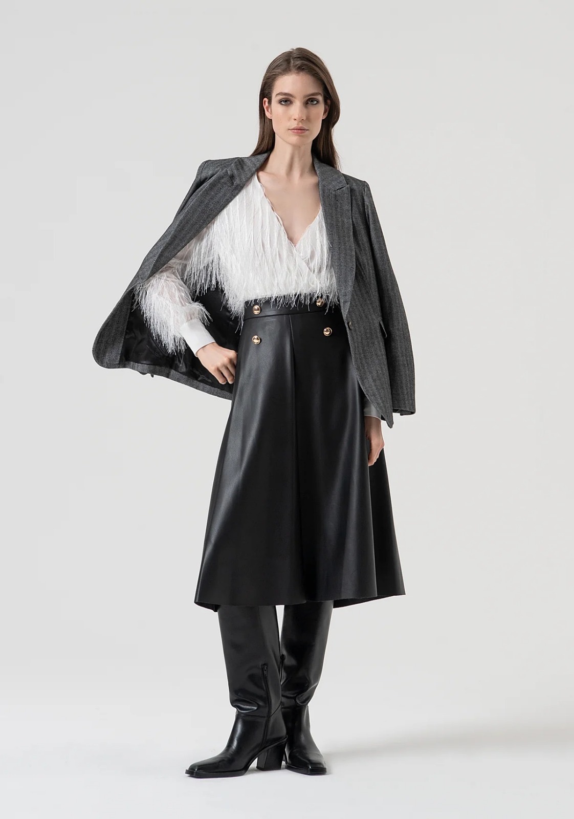 Un capo versatile e chic, ideale per completare tailleur, gonne o pantaloni dal taglio moderno.