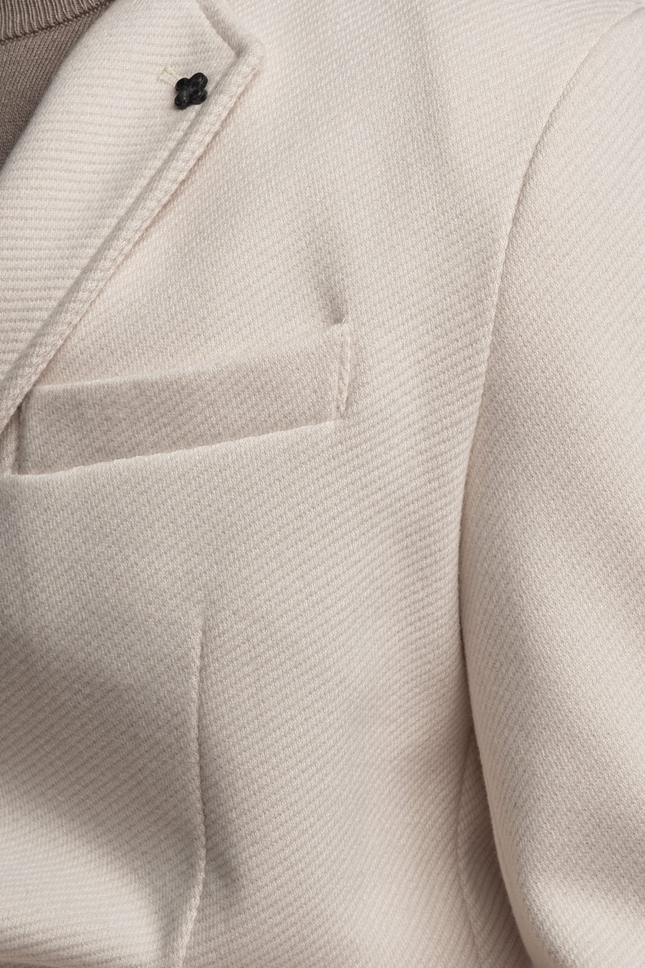Cappotto corto da uomo Gianni Lupo realizzato in morbido panno misto poliestere, viscosa e lana. Modello monopetto a tre bottoni con revers classici e spilla smaltata con chiusura a farfalla sull’asola. Presenta tasca a barchetta sul petto, tasche laterali a filo e spacchetto posteriore per maggiore comfort e libertà di movimento. Interno foderato in tinta unita e fantasia pied de poule, che dona un tocco sartoriale distintivo. Un capospalla elegante e versatile, ideale per look formali o casual chic.