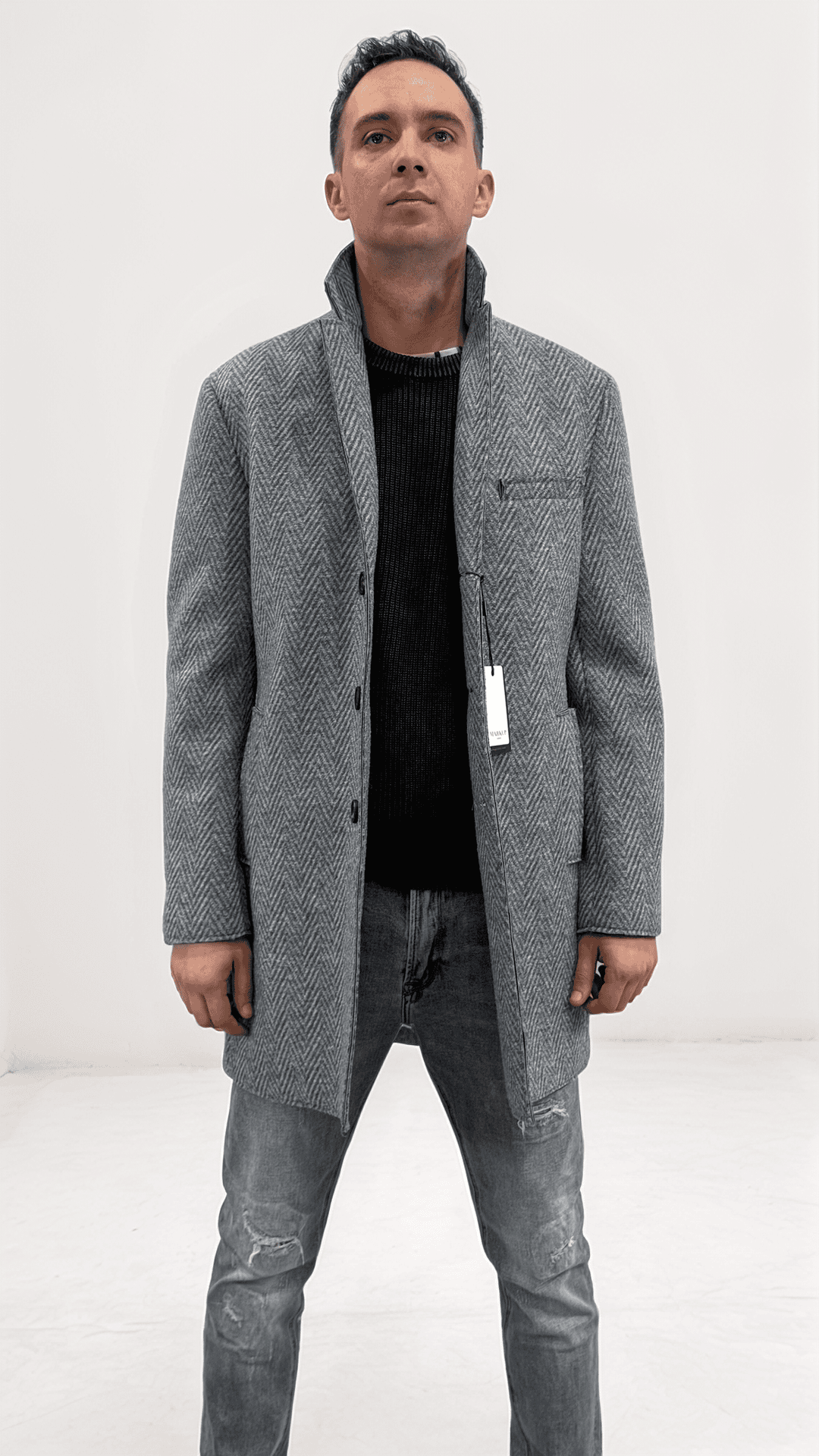Raffinato cappotto da uomo Markup realizzato in tessuto effetto baronetto di colore grigio, ideale per la stagione Autunno/Inverno. Il modello presenta un collo classico, chiusura con bottoni e tasche laterali a filetto, per un look elegante e contemporaneo.