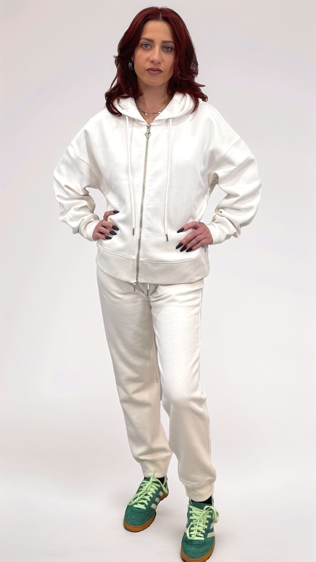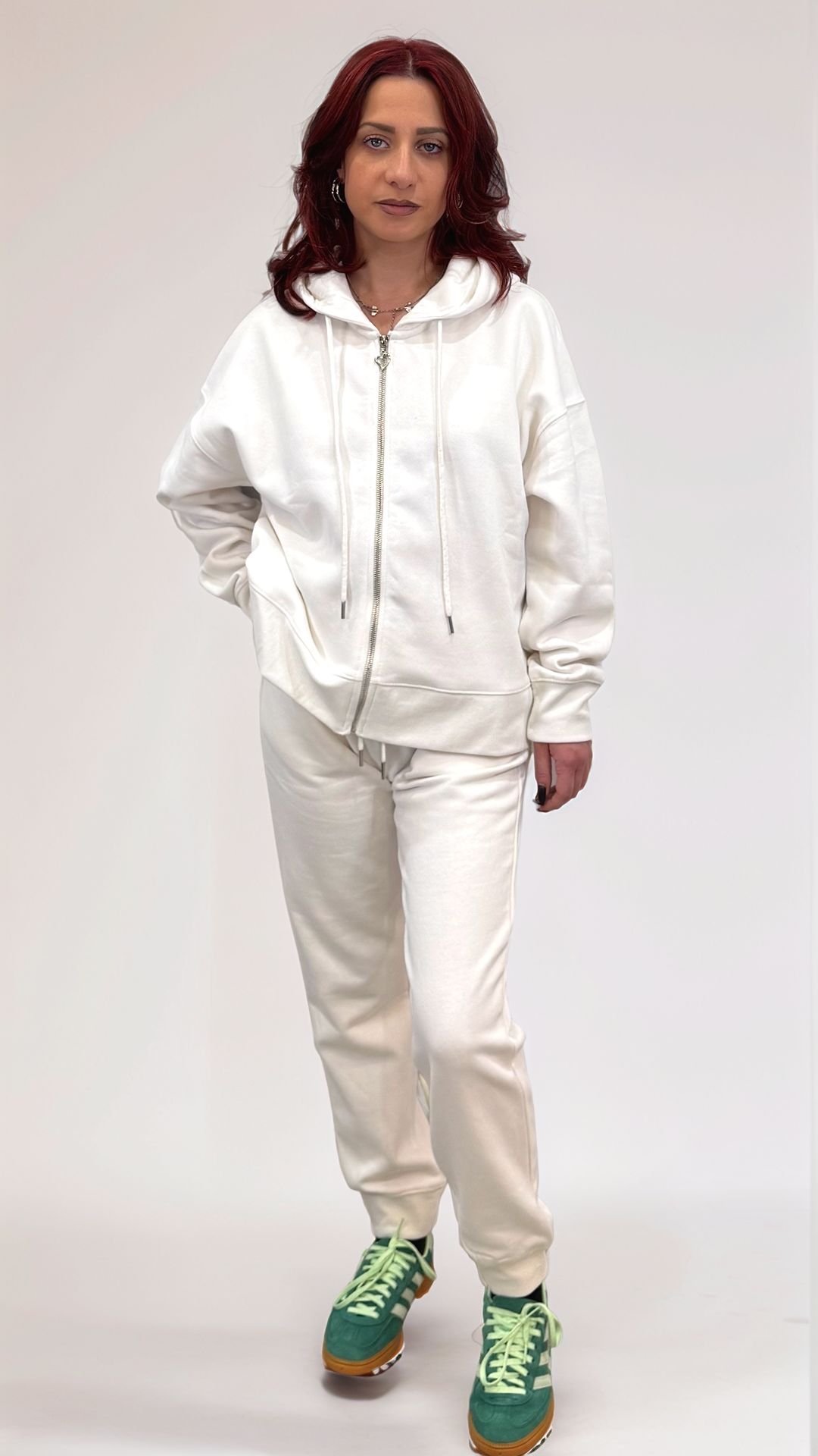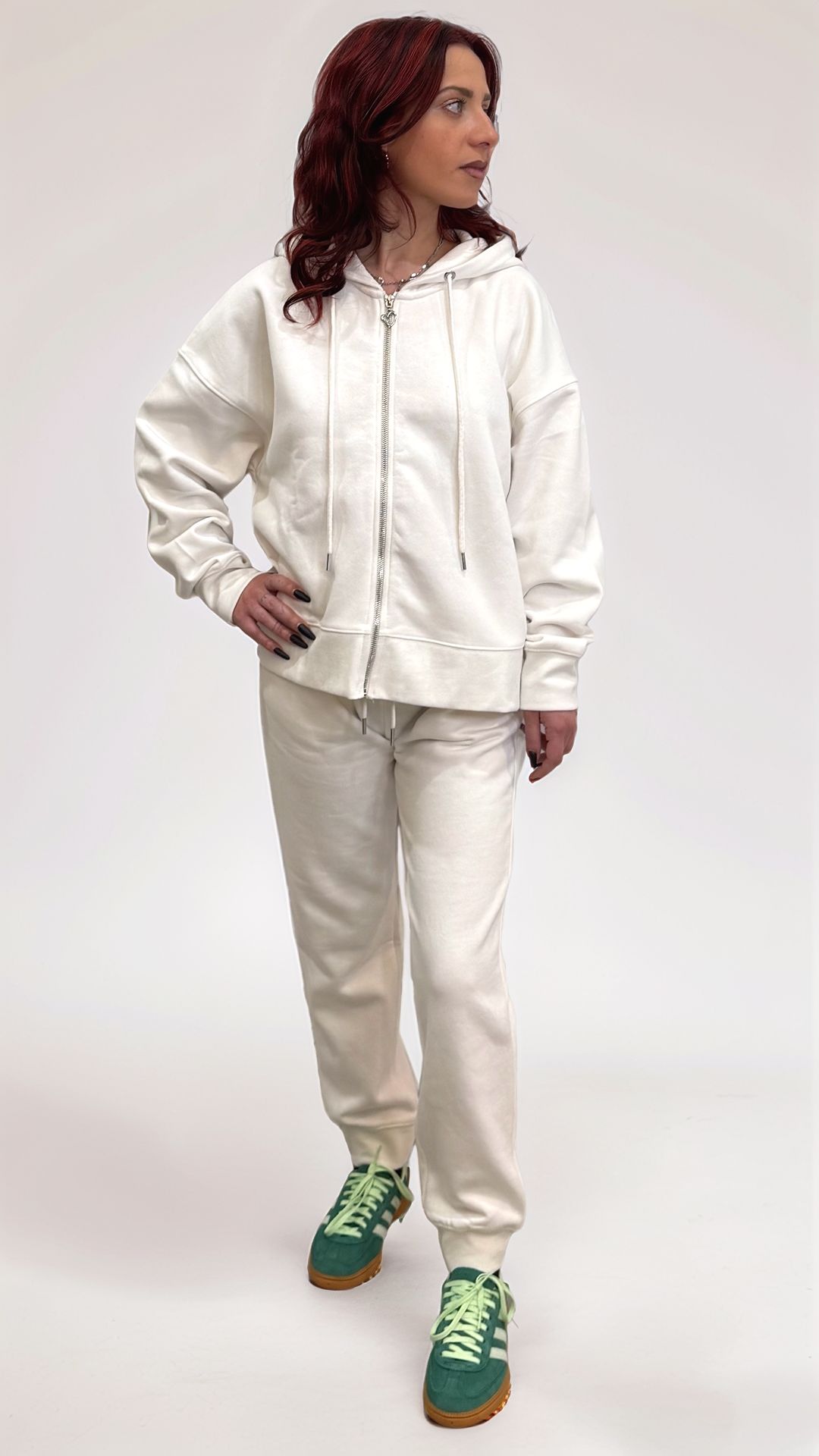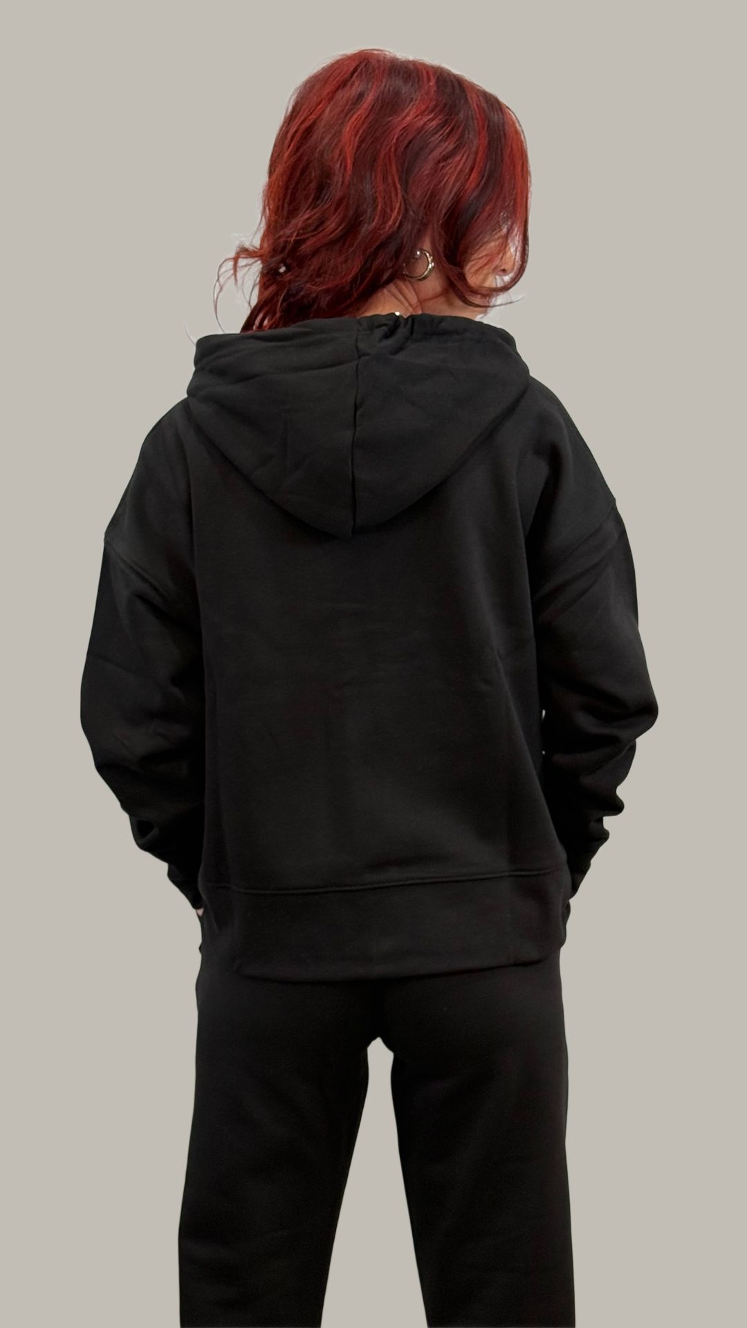 Felpa over donna Blash con cappuccio regolabile tramite coulisse e chiusura frontale con zip. Realizzata in morbido tessuto felpato interno per un comfort ottimale e un look casual contemporaneo. Presenta maniche lunghe con polsino elasticizzato, fondo leggermente stondato e tasche laterali a scomparsa. La vestibilità ampia e rilassata la rende perfetta per il tempo libero e per outfit sportivi o streetwear.