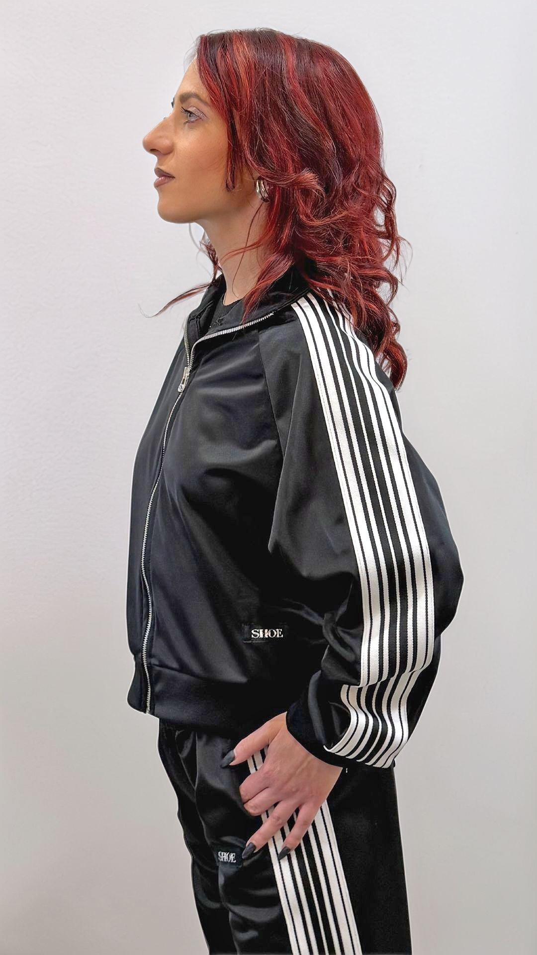 Ideale per outfit casual o streetwear, perfetta da abbinare al pantalone coordinato per un completo tuta moderno e confortevole.