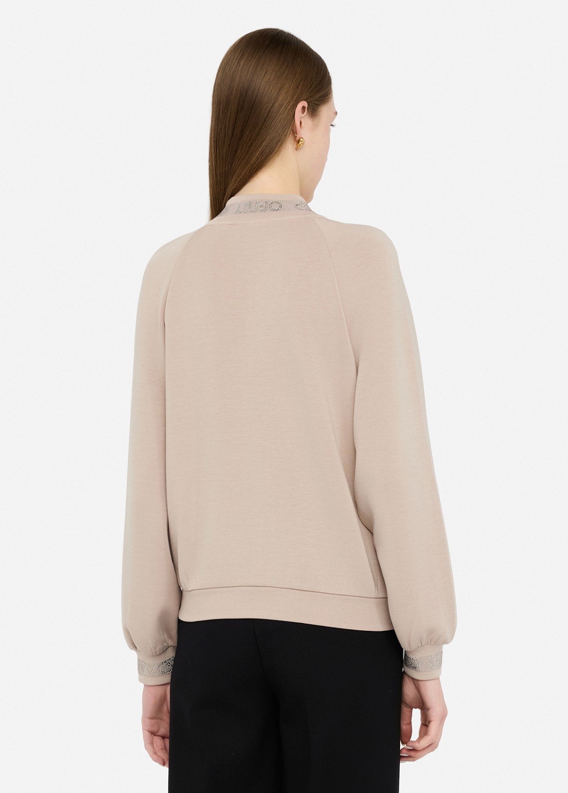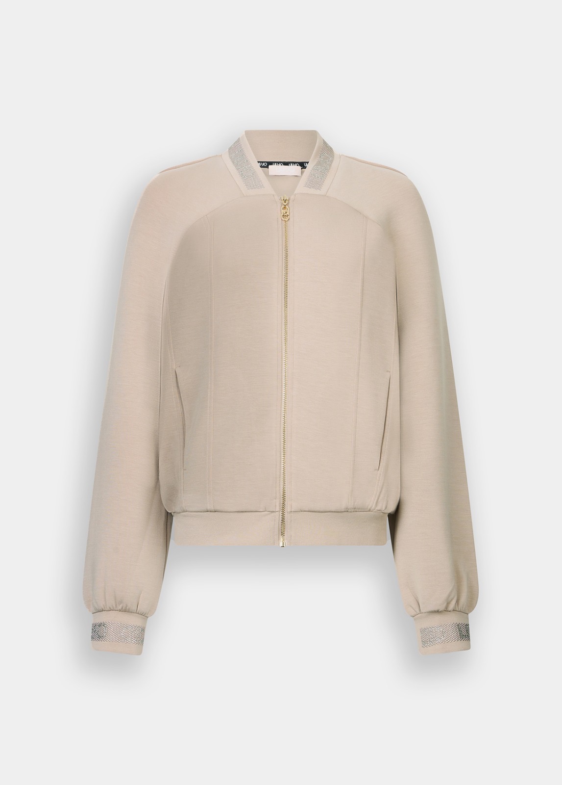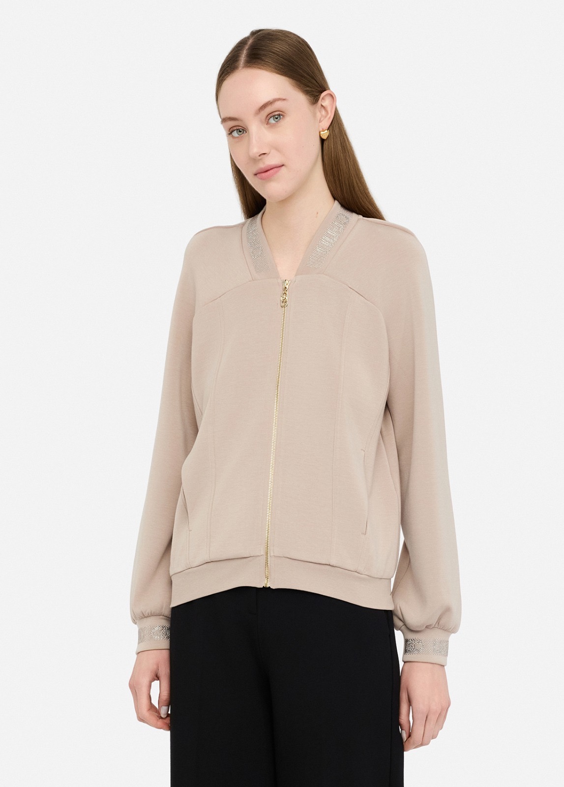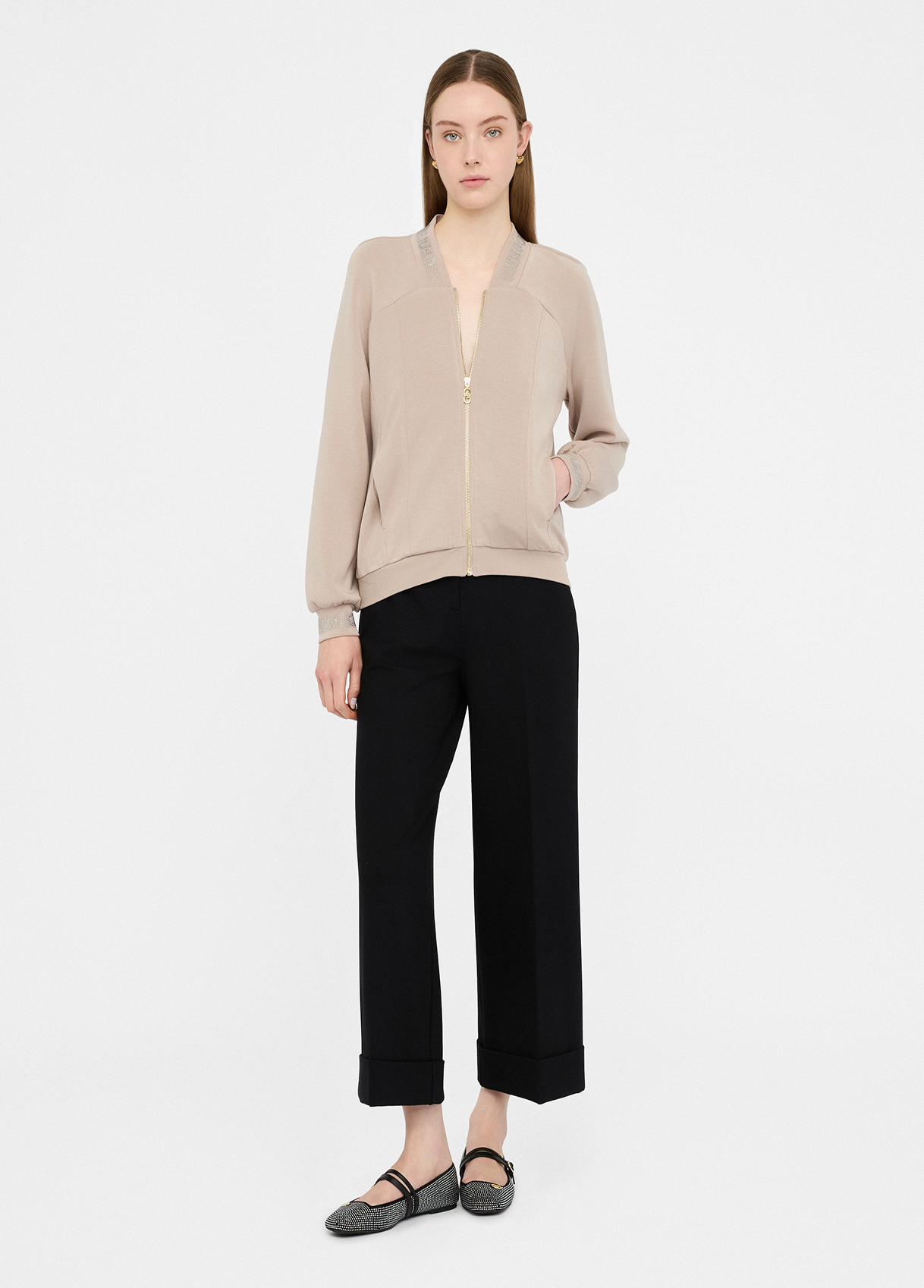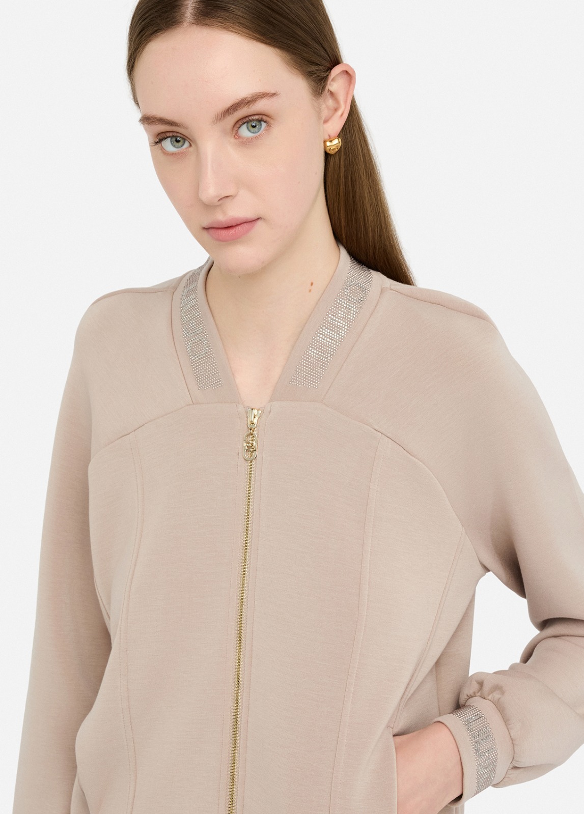Felpa in scuba stretch dal design moderno e femminile, caratterizzata da colletto bomber con logo e pratica chiusura con zip. Dettagli distintivi come tirazip logata, tasche laterali e polsi con logo rendono questo capo casual chic perfetto per il tempo libero e gli outfit urbani.