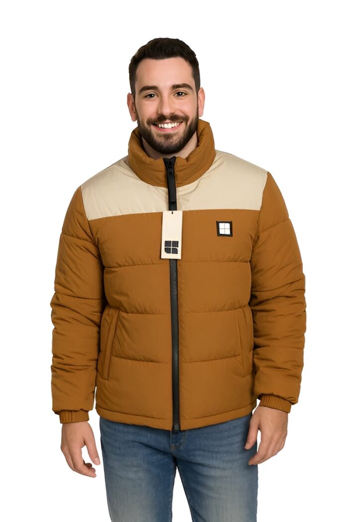 Giaccone imbottito Urban Ring da uomo in colore bruciato, ideale per la stagione fredda. Realizzato in tessuto tecnico resistente, presenta carrè in contrasto che dona un tocco sportivo, chiusura con cerniera frontale, polsi regolabili con elastico e velcro per maggiore comfort, tasche laterali con zip e pratiche tasche interne. Un capo caldo, versatile e funzionale, perfetto per il quotidiano.