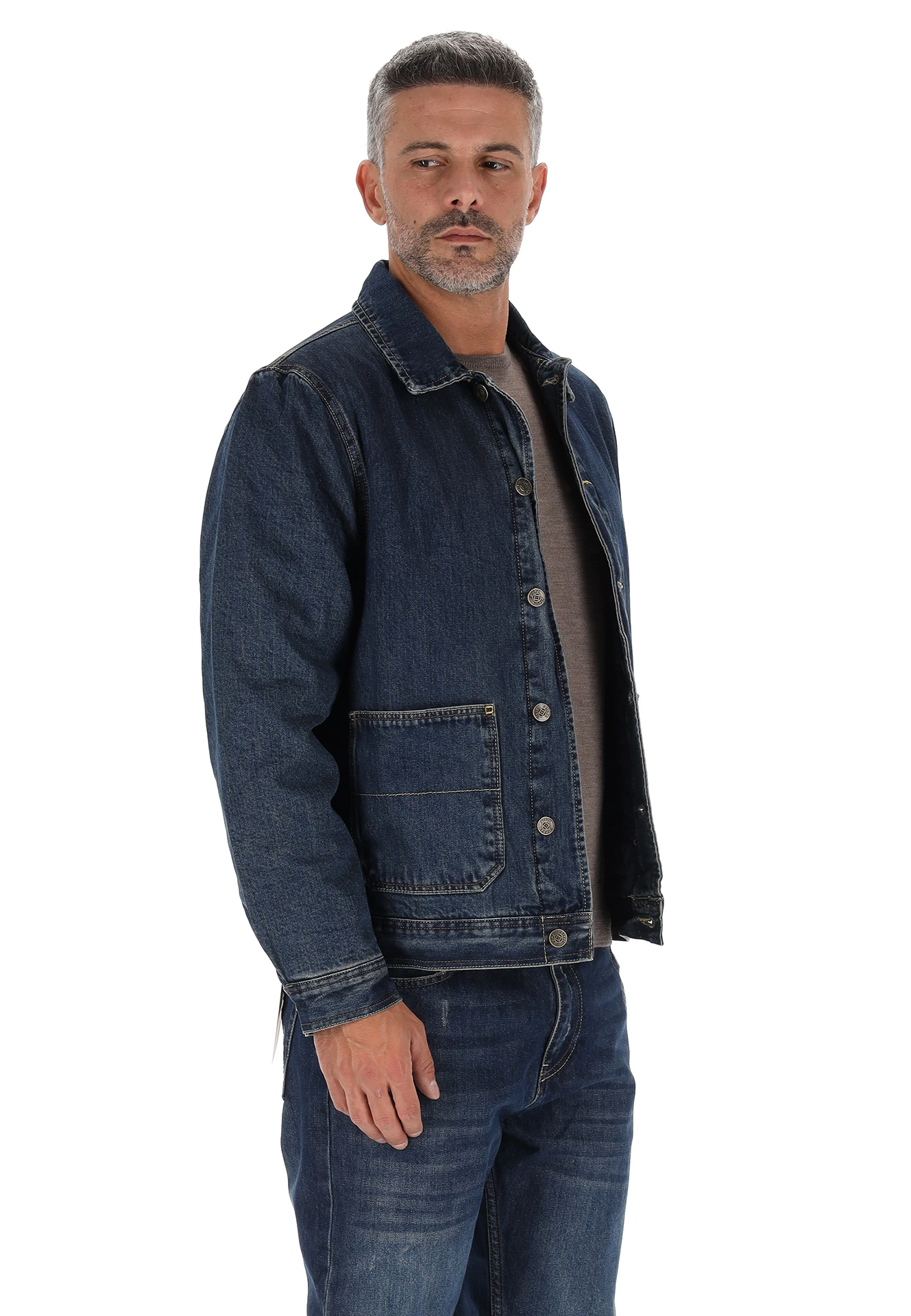 Giubbino in denim trapuntato da uomo firmato Pont Denim, perfetto per uno stile casual e contemporaneo. Realizzato in 100% cotone con fodera e imbottitura in poliestere, assicura comfort e calore senza rinunciare alla leggerezza. Modello regular fit con maniche lunghe e chiusura frontale con bottoni. Ideale per le mezze stagioni o come capo sovrapposto su maglioni e felpe.