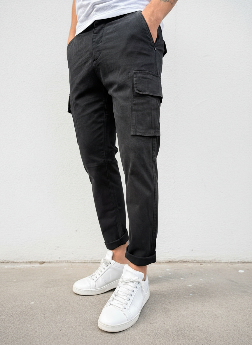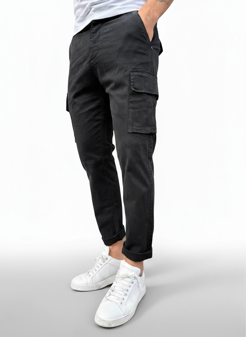 Pantalone cargo da uomo Gianni Lupo realizzato in tessuto morbido e confortevole composto da 57% viscosa, 30% cotone, 10% tencel e 3% elastan. La vestibilità regular fit garantisce comfort e libertà di movimento, mentre la vita elastica assicura una perfetta aderenza al corpo. Il modello presenta tasche laterali e tasche cargo con patta, chiusura con zip e bottone e fondo dritto.
