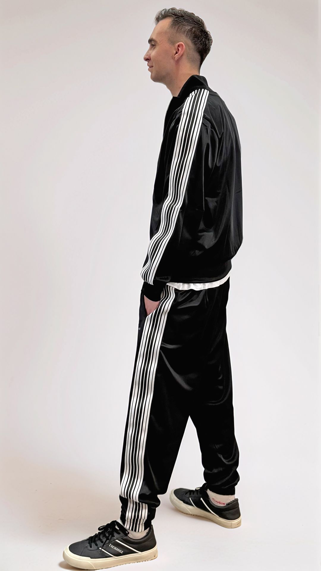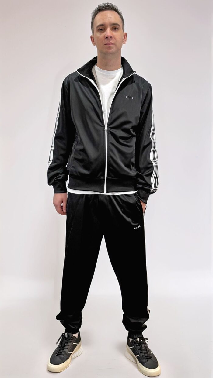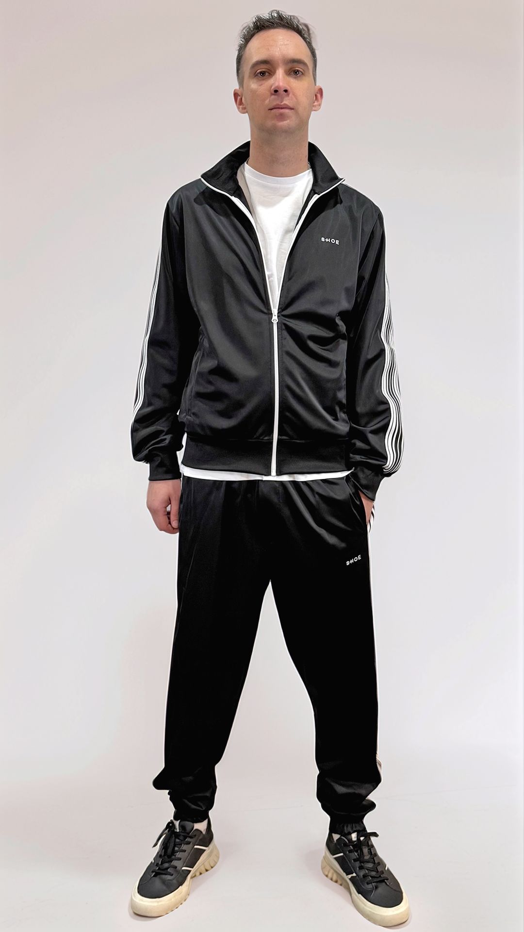 Pantalone da uomo in tessuto tecnico lucido firmato Shoe, perfetto per un look sportivo e contemporaneo. Il modello presenta bande laterali bianche che percorrono l’intera gamba, vita elasticizzata con coulisse regolabile e polsini sul fondo per una vestibilità comoda e moderna. Le tasche laterali assicurano praticità , mentre il taglio rilassato garantisce libertà di movimento.