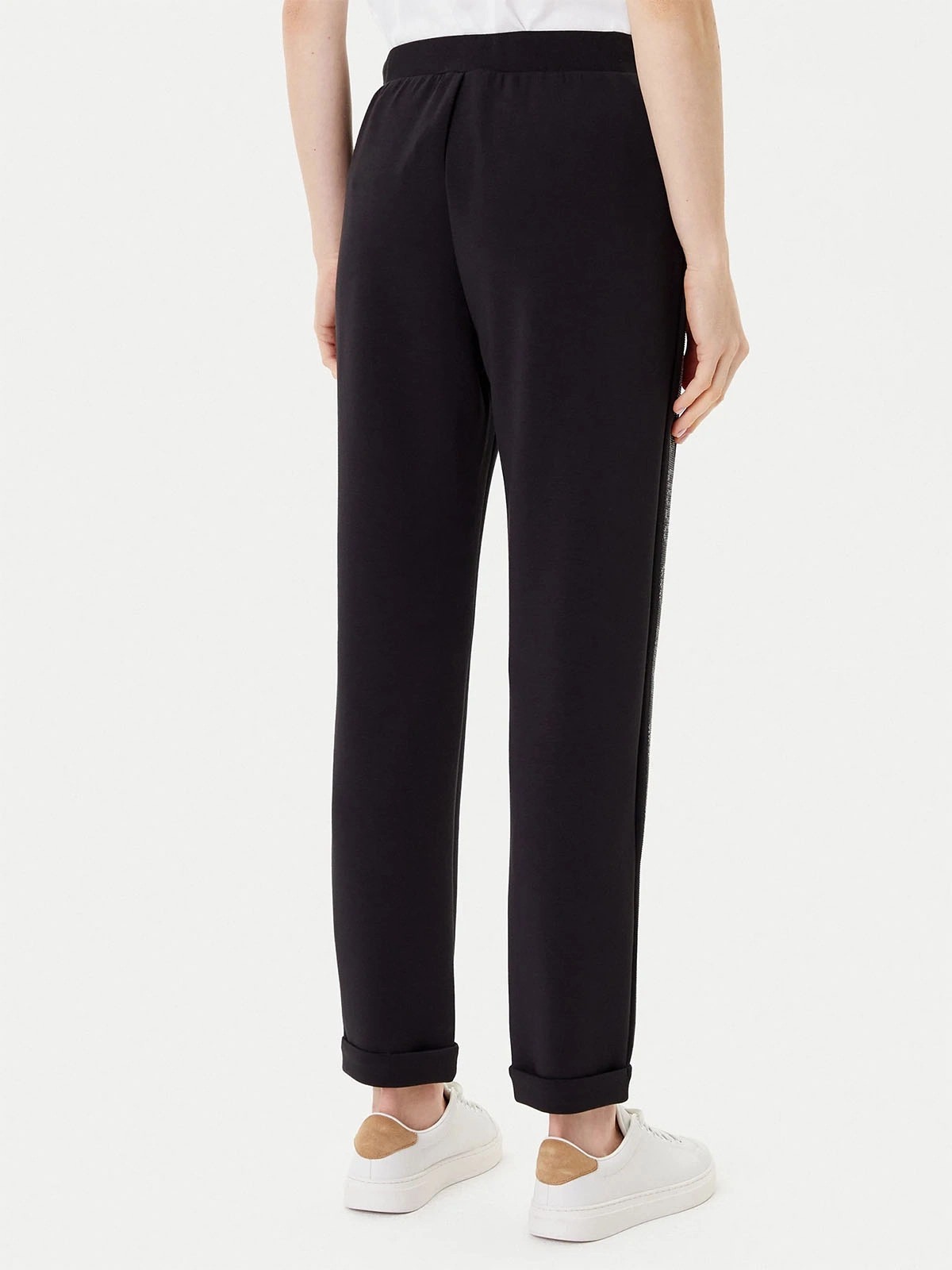 Pantaloni da jogging realizzati in scuba elasticizzato, dal design contemporaneo e confortevole. Caratterizzati da elastico in vita con coulisse, pratiche tasche sui fianchi, bande laterali con logo Liu Jo e mini borchie, e fondo con risvolto. Un capo casual chic perfetto per il tempo libero e per look athleisure sofisticati.